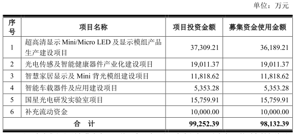 中国经济网北京7月11日讯国星光电(002449)(002449.SZ)昨日晚间披露《2025年度向特定对象发行A股股票预案》。本次发行预计募集资金总额不超过98,132.39万元(含本数),扣除发行费用后将用于“超高清显示Mini/Micro LED及显示模组产品生产建设项目”“光电传感及智能健康器件产业化建设项目”“智慧家居显示及Mini背光模组建设项目”“智能车载器件及应用建设项目”“国星光电研发实验室项目”以及“补充流动资金”。